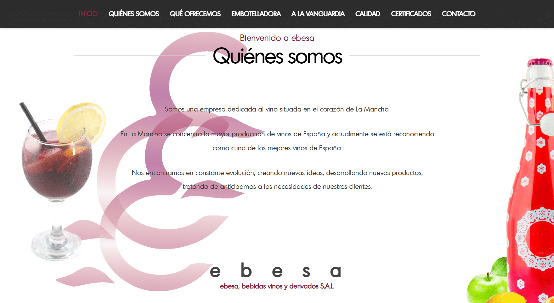 Ebesa es una gran empresa dedicada al embotellammiento de vinos en Ciudad Real desde 1947, y su página web debe hacer honor a tantos años de experiencia y calidad.