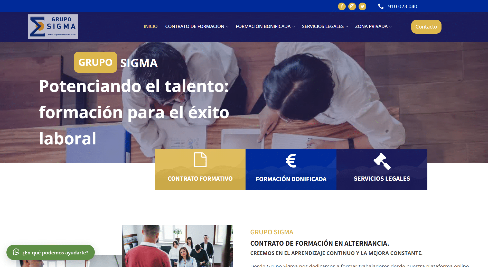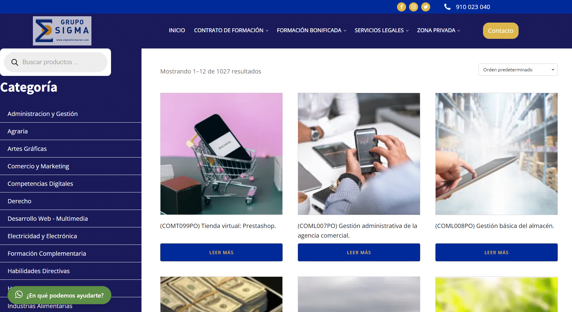 Para esta empresa que imparte cursos de formación profesional tanto online como presenciale, optamos por un bonito y elegante diseño. También usamos blanco, azul y detalles en amarillo como nos indicaron los clientes. Además de un gran número de secciones de información, contacto, y acceso para los alumnos, se ha incorporado un buscador con más de 1000 cursos que imparten.
